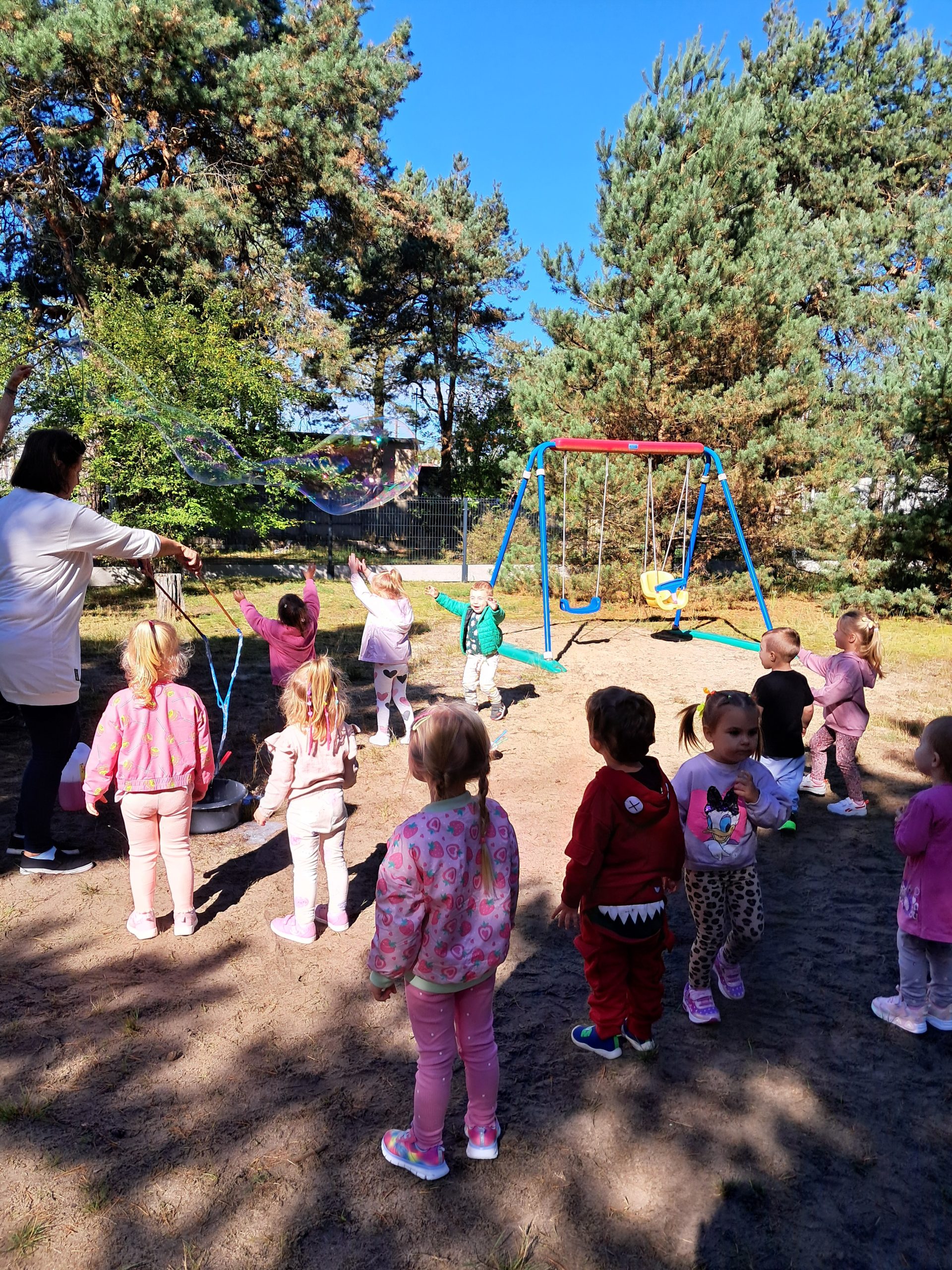 „Witajcie w naszej bajce, słoń zagra na fujarce Pinokio nam zaśpiewa, zatańczą wkoło drzewa Tu wszystko jest możliwe, zwierzęta są szczęśliwe A dzieci, wiem coś o tym, latają samolotem