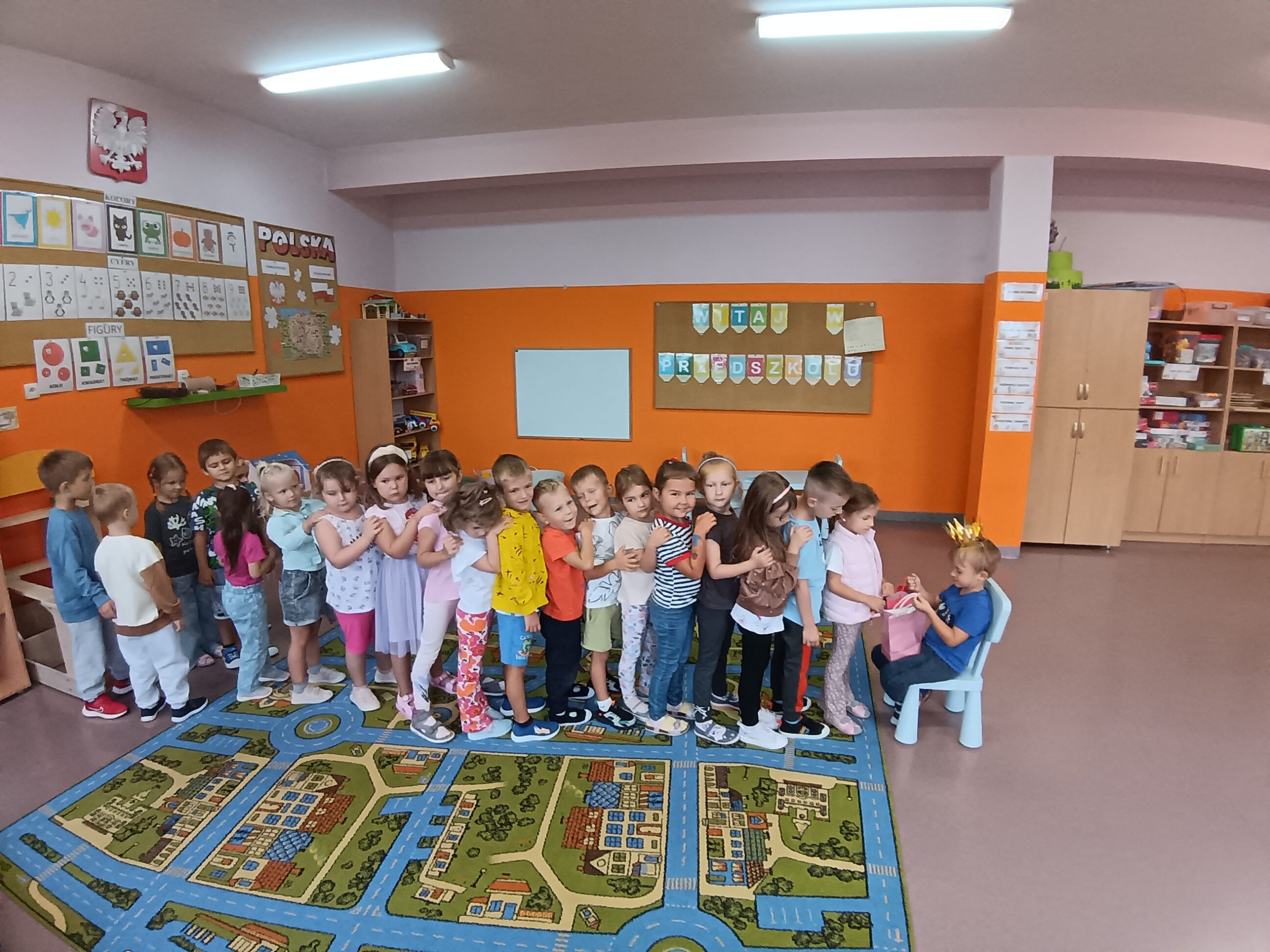 W wesołej i podniosłej atmosferze swoje umiejętności recytatorskie, wokalne i taneczne zaprezentowały wszystkie przedszkolaki. Wiersze i piosenki opowiadały o pożegnaniu, tęsknocie i nowych zadaniach czekających na przyszłych uczniów. Po części artystycznej dzieci otrzymały dyplomy i nagrody książkowe oraz życzenia wielu sukcesów w nowej szkole.